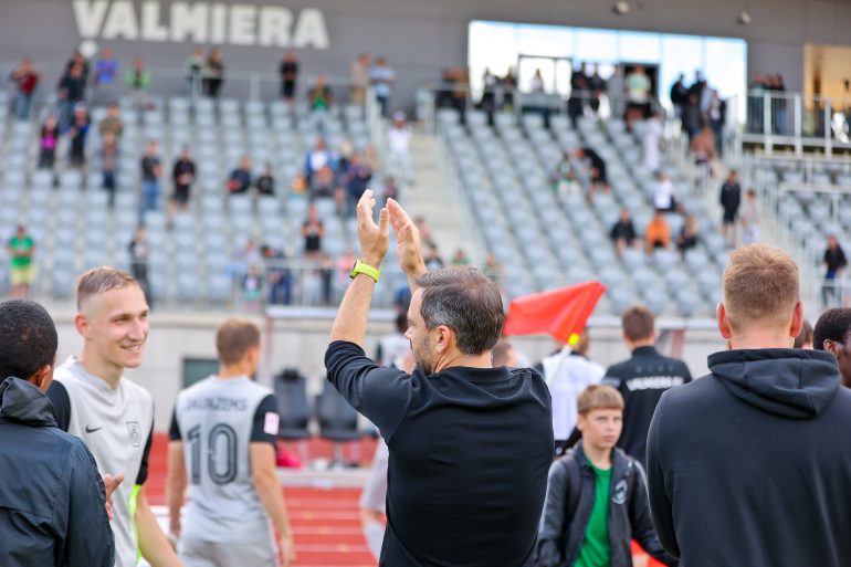 Valmiera FC head coach Jurgis Kalns: ”Thank you to the players that they showed character on the pitch. I’m thankful that we didn’t stop playing and at all times we tried to play a faster game, trying to prepare for our next games, even more so – hopefully for the next two months that will be very intense. We might have to play a game every three days and we will be ready for that. Today’s game was a start of a marathon. I walked 9000 steps, which probably means that the match wasn’t that intense because I usually have 12-13000. Thank you to the team that they are caring for my health, also their own as we played the game without any injuries and almost without any cards as well. Daugavpils was the only team that we had scored only one goal in two meetings. We hadn’t conceded, but we improved our goal count. Obviously, it’s not great that we allowed the goal against but three points have been earned. We can now switch to the next games that will be very important.”