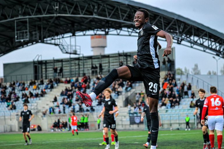 The breakthrough came in the 27th minute, when Rojs Bušs fired in from a tight angle — a shot that Kārkliņš mishandled as the ball found its way into the net — 1:0. Just 12 minutes later, Oskars Stupelis showed no hesitation inside the box, turning and smashing the ball home for 2:0. Defender Daniel Adelakun then made it 3:0 right before halftime after a well-worked play near the goalmouth.