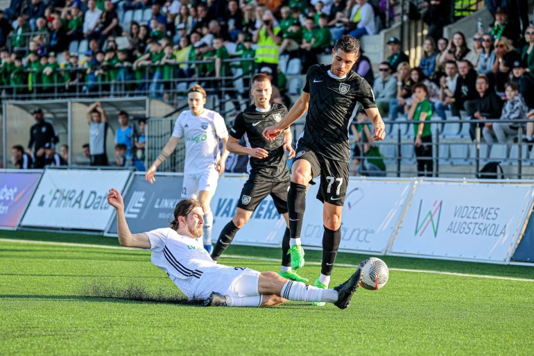 When the additional time of the game came, Jurgis Kalns decided to go all out, sending Alekseiciks from the defense to attack, he received the ball in front of the goal in the 5th minute of the compensatory time and finally beat Nikita Pincuks. In one of the last attacks, there were variations in the attacking option. Still, the substitute Jason Bahamboula chose to shoot the ball himself, trying to steal the tie, which was lit on the scoreboard – unsuccessfully. The game ended in a draw.