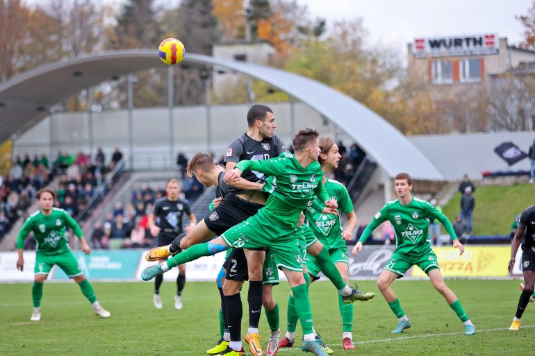 When the starting whistle sounded in Tukums, it was clear – Valmiera FC will be the favorites on the pitch because the Tukums team’s plans included defense with a couple of counterattacks in the arsenal. At the beginning of the game, there were several good moments for the visitors, three for Alvis Jaunzems, but unfortunately without a result. The opponent responded with a counterattack, in which Maksims Tonisevs saved the situation – the ball almost flew into the goal. Still, the defender from Valmiera swept it from the goal line with his head.