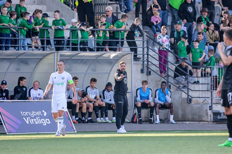 Valmiera FC head coach Jurgis Kalns: Thanks to the fans, they were fantastic. Although the score was 1:1, I think the game did not disappoint. I don’t remember the last time Valmiera fans here saw five goalposts, crossbars, and everything that happened there. If I’m not mistaken, we made around 36 shots, and 12 corners – a lot of moments, but the tie was only broken in the last minutes. Knowing how we’re going in waves, I told the guys that they can be proud, this is how we grow as a team, even a draw was possible and victory was also possible. We went forward, we wanted to win. Of course, if we realized the opportunities at the opponent’s goal in the first minutes, the game would have ended differently. Against these teams, you have to score goals and take advantage of every opportunity because not scoring gives the opponent confidence. They gnaw the ground. One shot, a cross, and a goal, we try to attack, moment by moment, the goalposts, for the opponent it is the confidence that something is on their side today. You fight, gnaw the ground for that one point, I’m glad we managed to win it.”