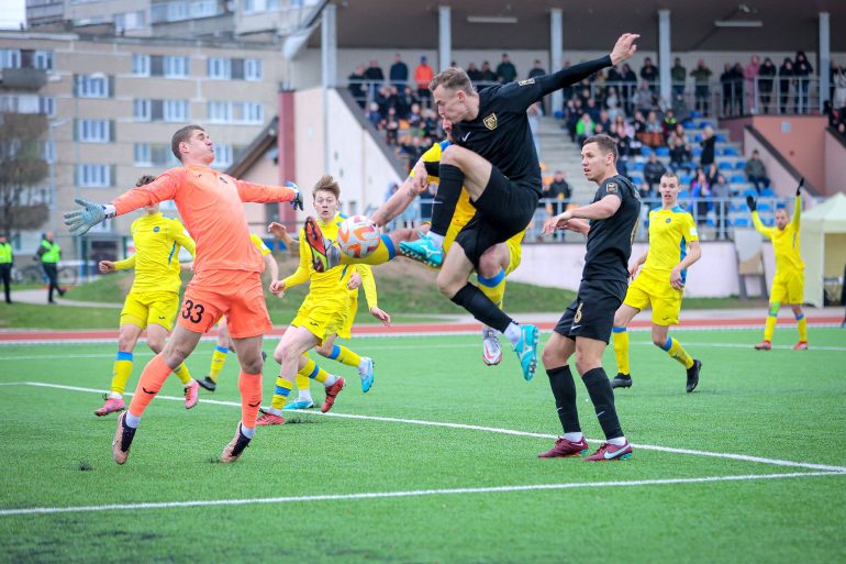 Kicks from all angles by a variety of players but nothing – opportunities were either wide or turned away by Rudolfs Soloha. The first chance for the opponent arrived in the 15th minute – Denis Rakels with the shot but in a comfortable position for Klavs Lauva who made the save.
