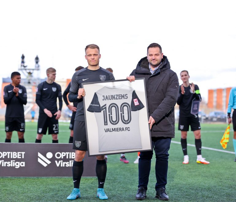 Pirms Optibet Futbola Virslīgas 4. kārtas mača pret FK Metta sveicām sveicām mūsu komandas ilggadēju spēlētāju, Valmiera FC pamatvērtību nu jau kārtējo sezonu – Alvi Jaunzemu, kurš mūsu komandas kreklā aizvadījis jau 100 spēles.