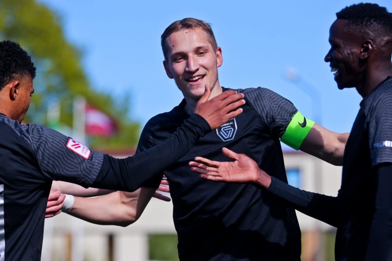 After the first alarm bells, Valmiera FC captain Raimonds Krollis had his word to say – once again Gueye from an angle towards the net, but this time Krollis was in front of the net and did enough to re-direct the ball past the opposing goalie for 1:0. After the goal, things calmed down and you could watch more battles in the middle zone of the pitch.