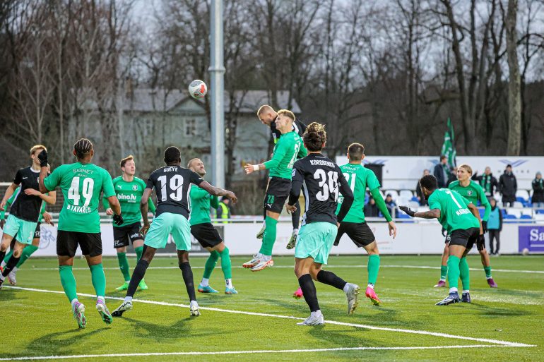 It was quite painful to allow a goal, Daniels Balodis received a yellow patch when stopping a potentially dangerous chance, giving the opponent a free-kick. There, although a visual offside, a long VAR review, nevertheless – a goal after a cross. In the remaining time, Auda had more fun with the ball, and Carlos Olses and his defensive bastion had to work.