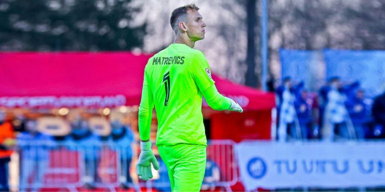 Valmiera FC goalkeeper Rihards Matrevics: ”During the match, there were episodes that helped me gain confidence. Of course, we were pushed to play defensively but still, we took opportunities of our own, and the guys did a great job. In the episode where I stopped the ball on the goal line, I just stood in the net and patiently waited for the ball to come through, it was very important to read the situation correctly. If the goalkeeper plays in a technically correct manner he has to catch these balls. At the moment when we managed to get a 2:0 lead, I hoped that we would score some more because we had the chances. What I didn’t want was to allow a goal at such an early point of the second half which changed the tempo of the game. Emotions played a big role today but you have to get over that wall even though it isn’t easy. We had to come together and play as a team and I think that we did exactly that in a way. The most important thing is what the scoreboard shows and it was in our favor. We tried to push all we could, we adapted well, changed the formation and manner that was more focused on now allowing the opponent to get past us. I didn’t go to celebrate Ndoye’s goal on the other side of the pitch because I wanted to preserve energy and emotions so that I can have a calmer head. We for sure know that all teams will lose games at some point as for example Riga did. Our task is to learn from our mistakes and keep marching forward. For me it’s also cool that the team has a new goalkeeper coach, we are already working together but still have to learn to understand each other fully.”