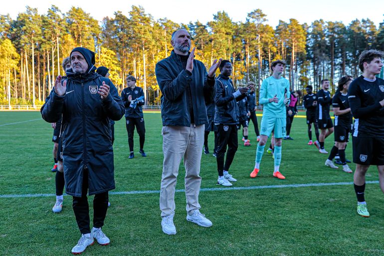 The rare loss this season came in a match where the visitors clearly proved to be equals — their teamwork and physicality matching Valmiera’s strengths throughout. Our former goalkeeper, Dāvis Viljams Veisbuks, now guarding the Super Nova goal, wasn’t seriously tested by Valmiera’s attack and managed to keep a clean sheet without much trouble.